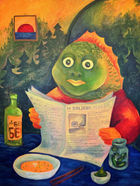 Anastasiia Lodde is a Copenhagen-based artist whose practice spans painting, sculpture, installation, video, object-based work and performance. Before committing fully to art, she studied biology and spent years working in genetics, a background that continues to shape her visual language through ideas of repetition, variation, mutation and inheritance. Her move to Denmark in 2019 prompted a deeper exploration of migration, belonging, disorientation and the rebuilding of a sense of home. The works recognised by the award place the fish at the centre of her symbolic world, as a hybrid figure caught between vulnerability, adaptation and alienation. Newspapers, telephones, tableware, suitcases, urban settings and landscapes transform the everyday into a symbolic terrain, where personal memory meets wider social and political pressures. Her paintings retain visible traces of earlier layers, as though time itself remains inscribed on the surface of the canvas. Through irony, tenderness and quiet tension, Lodde builds a world in which home is not a fixed place, but a fragile bond between body, memory, objects and the spaces that shape us.